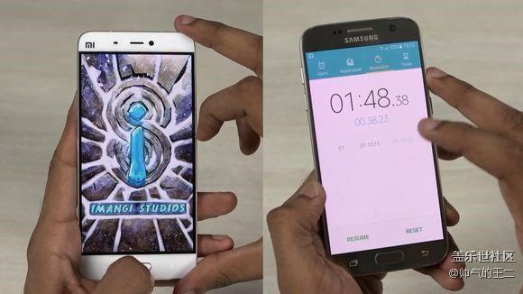 第一輪,三星所有程序加載結(jié)束耗時1:10 秒小米5還在掙扎。