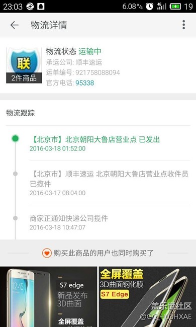 天貓預(yù)定的s7edge發(fā)貨了? 圖片