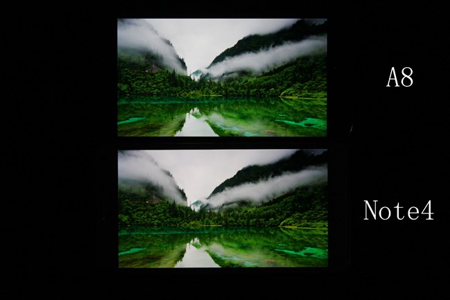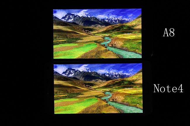 好了我們繼續(xù)說,A8采用了一塊兒5.7英寸的FHD分辨率的顯示屏,在顯示效果上向Note4看齊,當然了,分辨率方面自然是不如Note4的。