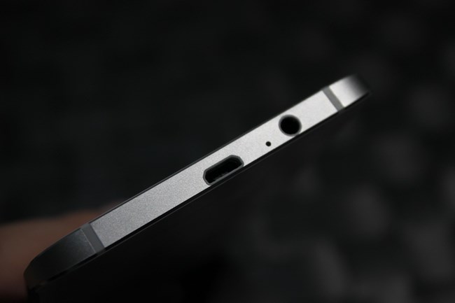 A8的底部,可以看到金屬中框是切割后進行注塑以保證信號強度的(我想大家或許還記得某廠家全金屬機型在機身背部留下兩道“白帶”有多么的難看)。從圖二中我們還能看到A8的機身背部是有一定弧度的,為手感帶來了很大的提升。