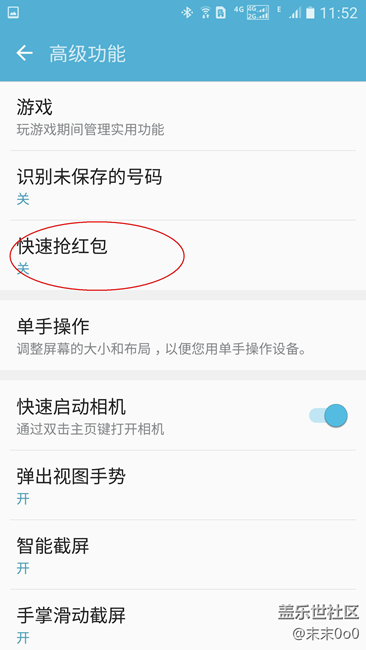 2、打開高級功能后可以看到快速搶紅包,點擊打開