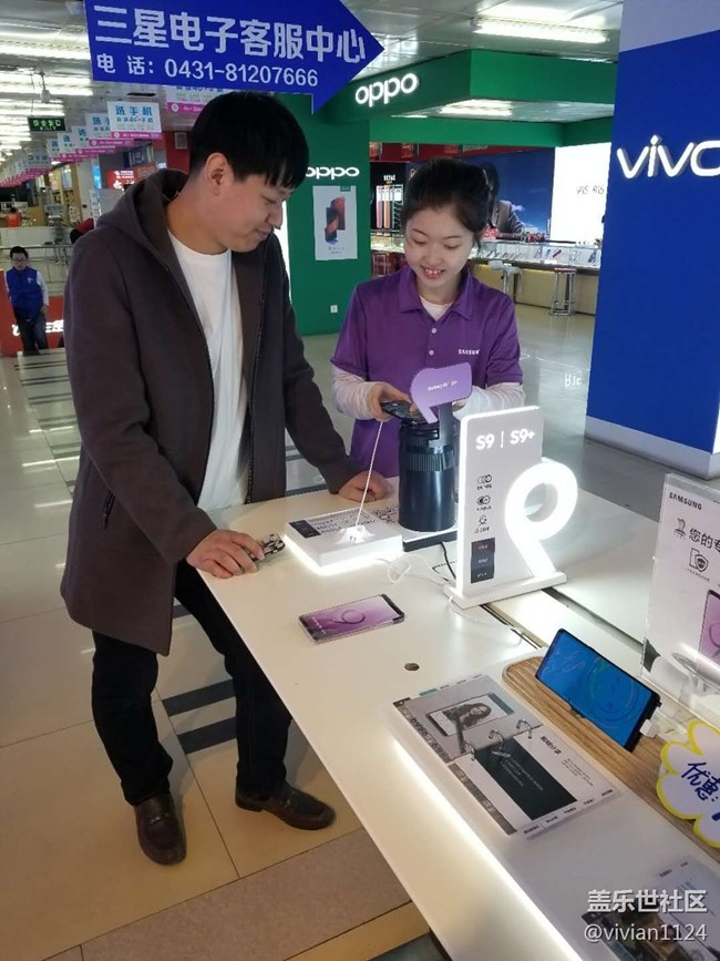 隨后我又向顧客介紹S9的其他功能,凝時拍攝,暗光拍攝,并且用店內(nèi)的相機托架給顧客進行了演示,顧客也對比了一下蘋果與三星像素的差別,稱贊三星S9相機確實很好。接著我又給他演示了立體聲揚聲器,男生平時喜歡玩游戲,用我們的立體聲揚聲器在玩吃雞時連敵人的腳步聲都可以聽到,配上大尺寸屏幕占比更讓人有身臨其境的感覺。然后又把蘋果和三星手機進行對比,顧客反應(yīng)他的手機一是單卡特別不方便,二是冬天一冷就關(guān)機很耽誤事,相反三星手機就不存在這些問題,我們聊了很長時間,顧客對我的講解很滿意最終決定購買了S9。