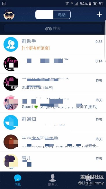 有更新6.0后QQ用了一陣后變這樣的嗎?設(shè)置的夜間,中間那塊卻是白色的!