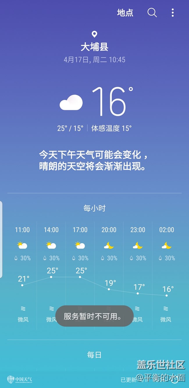更新正式版8.0后出現(xiàn)天氣“服務(wù)暫時(shí)不可用” 圖片
