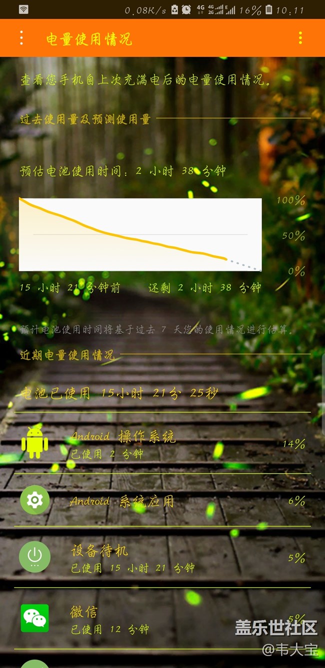 晚上睡覺,這電池還是一路下飄