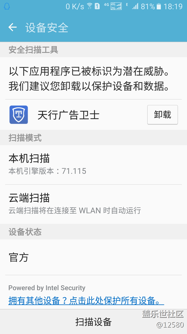 帖子名稱 瀏覽器自帶的天行廣告衛(wèi)士被智能管理器報威脅?除了我還有誰
