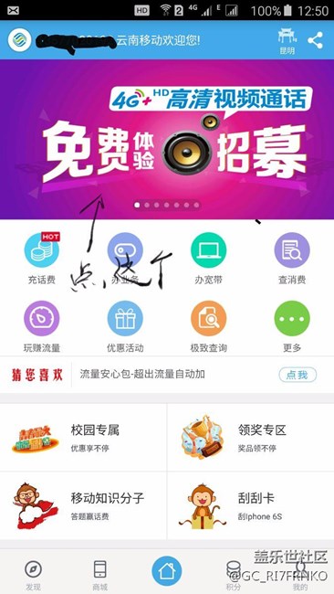 下個云南移動客戶端,點高清通話體驗就可開通