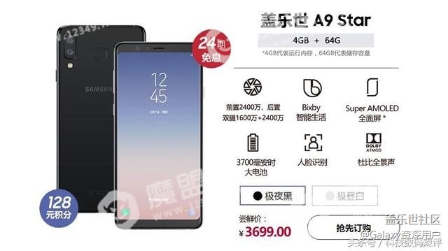 售價(jià)方面,三星A9 Star 售價(jià)3699 元起,三星A9 Star Lite售價(jià) 2699 元起。另外兩款手機(jī)都支持Bixby人工智能助手和人臉識(shí)別以及杜比全景聲。代言人是國(guó)內(nèi)當(dāng)紅歌手華晨宇,全款預(yù)定就有禮品贈(zèng)送。