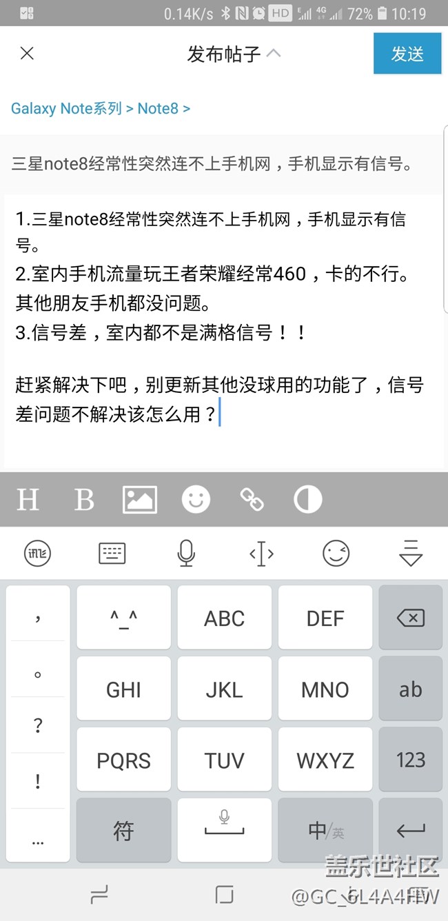 三星note8經(jīng)常性突然連不上手機網(wǎng),手機顯示有信號。 圖片