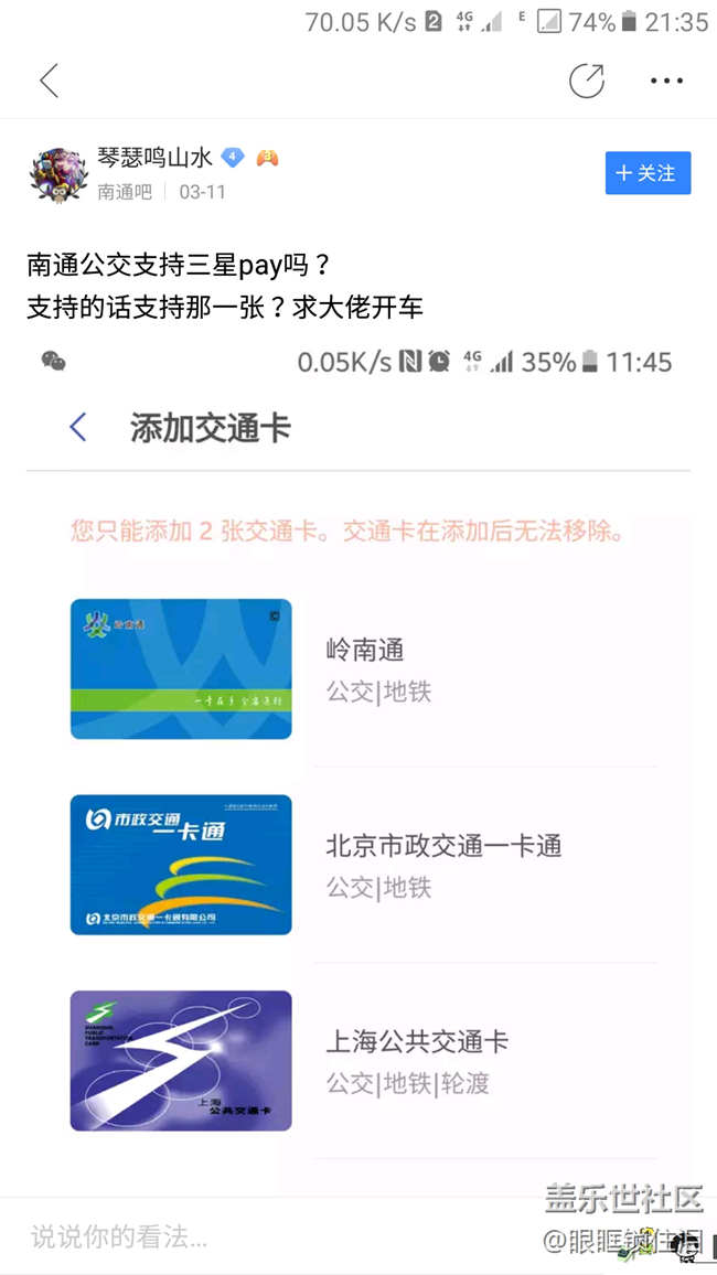 帖子名稱 上海公交卡可以在南通刷嗎?