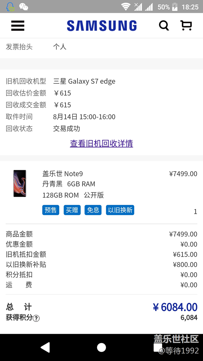12的時(shí)候發(fā)現(xiàn)還可以下單,以為也是18號(hào)能發(fā)貨呢,結(jié)果我用了兩年的s7s給回收了,17號(hào)愛(ài)回收也按估價(jià)一分沒(méi)有給錢了??墒俏乙稽c(diǎn)都不開(kāi)心,愛(ài)回收一個(gè)電話沒(méi)有打給我確認(rèn),感覺(jué)自己賣低價(jià)了。但想著很快我就可以用上n9了也就算了,結(jié)果這幾天逛論壇發(fā)現(xiàn)我的手機(jī)可能要28號(hào)才發(fā),而且15號(hào)下單的還可以抽獎(jiǎng),從那一刻開(kāi)始我就知道這可能是我最后一次追三星手機(jī)了。不知道有多少三星的老用戶和我一樣給三星的營(yíng)銷手段傷透了心呢?想著我現(xiàn)在還要用一部14年的HTCe8半個(gè)月心就透涼透涼的。