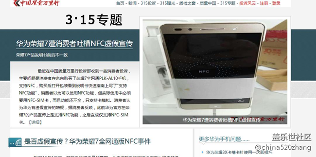 大家團(tuán)結(jié)起來一起去投訴,像華為榮耀7NFC功能不是被投訴了