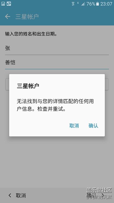 帖子名稱: 新注冊(cè)的三星賬號(hào)一直提示 “處理失敗” 登錄不上去!