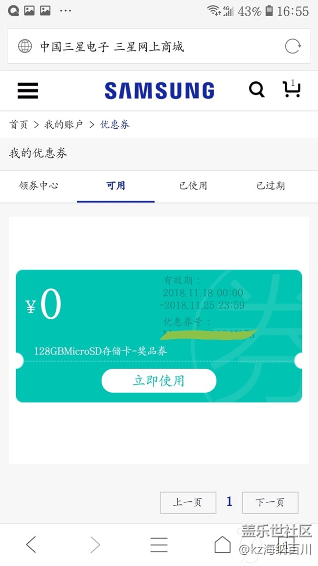 剛在三星官網(wǎng)會員活動抽獎,抽中一個128G內(nèi)存卡券。。。。