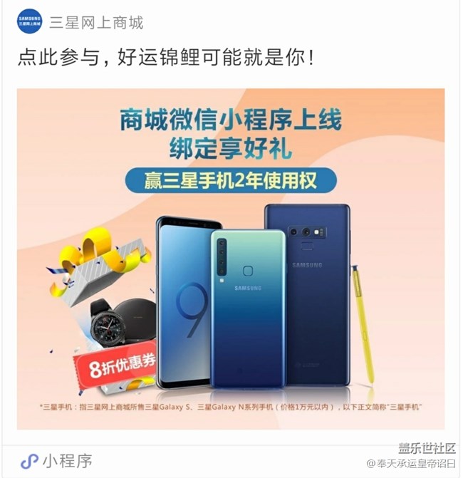 三星網(wǎng)上商城活動(dòng)好運(yùn)錦鯉1元贏取手機(jī)使用權(quán) 圖片
