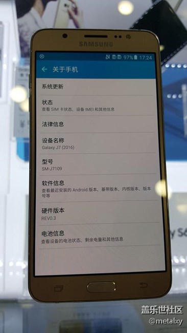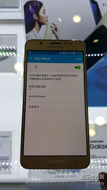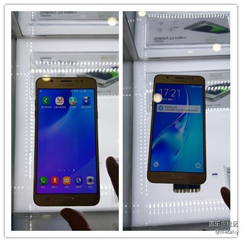 回到正題上,我和營業(yè)員聊開了,順道我問她J7上市沒有,她馬上拿出這款手機給我看