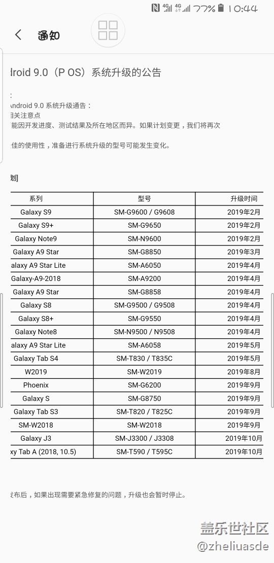 三星官方放出的安卓9.0時間公告 圖片