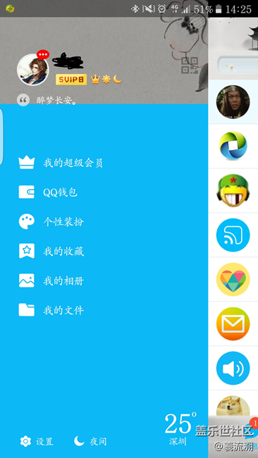 我也不知道這屬于疼迅的問題還是三星的問題,總之開機(jī)之后第一次打開手機(jī)QQ皮膚是失效的,也就是說只有默認(rèn)的皮膚,然后在最近打開程序里邊關(guān)閉了QQ之后再打開QQ主頁面的皮膚就恢復(fù)了,只有側(cè)邊欄還是很丑的一個藍(lán)色,蛋疼的不行不行的...