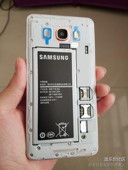 再說說背面。背面的設計我認為比上一代J系列有明顯進步,首先是背殼帶有一點金屬質感(當 然本身是塑料),而且弧度沒有那么大,攝像頭也與機身齊平,看起來更協(xié)調。槽點是那個揚聲器,放在背面真的很容易被擋聲音??!J5108依然是可拆卸后蓋,非常適合老人使用。這款手機的后殼還是比較牢固的,里面有兩個sim卡槽和一個內存卡槽。