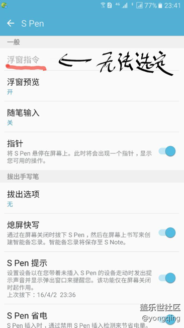 【求助】note5 升級6.01后Spen浮窗指令無法選定 圖片