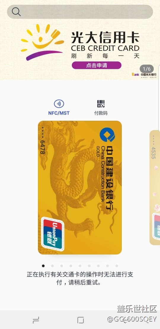 三星pay刷過公交卡后不能刷銀行 圖片