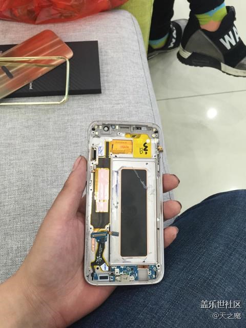 今天預(yù)定的屏終于到了!接到電話立馬到售后換屏!終于知道為什么屏這么貴了!整個外殼和屏是一體的全要換掉!其實就是把零件全部按到另一個手機(jī)殼里!按完后還不忘給做個防水測試!終于把我心里的顧慮消除了!(ps:之前不知道怕修了以后不防水了?。┬藓煤筅s緊全副武裝起來!金屬殼!鋼化膜!