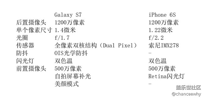 前置攝像頭的拍攝組合,不支持OIS防抖;三星Galaxy S7采用 1200萬像素主攝像頭(f/1.7