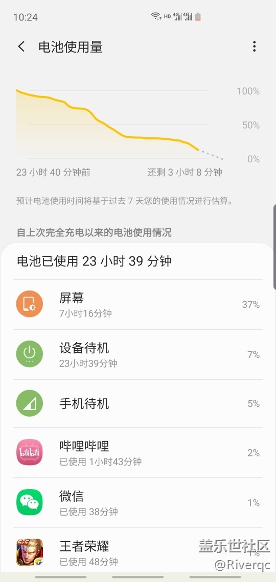 S10 使用第二周,電池續(xù)航能力比起上周又有了進步,中度使用24小時沒問題。