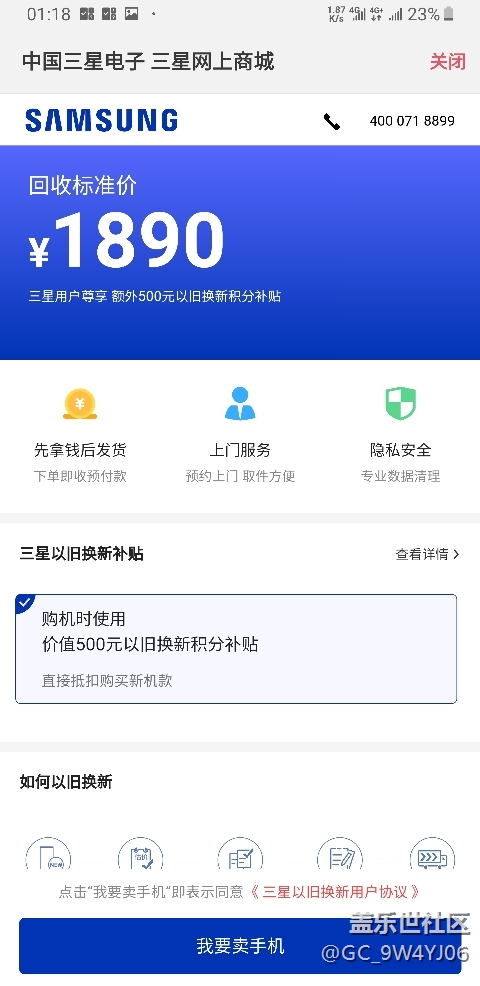 官網(wǎng)商城以舊換新,三星國行S9 冰藍色6 128G,入手三個月,按最輕微(就差沒選全新機了)提交各功能選項,竟然報價1900不到