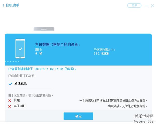 【求助】手機(jī)使用S換機(jī)助手備份數(shù)據(jù),還原時(shí)提示有錯(cuò)誤 圖片