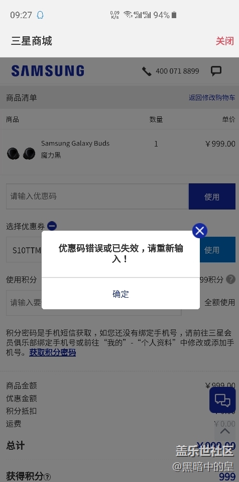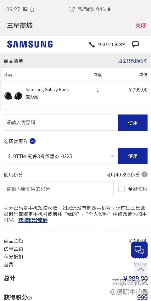 帖子名稱: 求助,購(gòu)買三星buds的時(shí)候不能用打折券嗎?