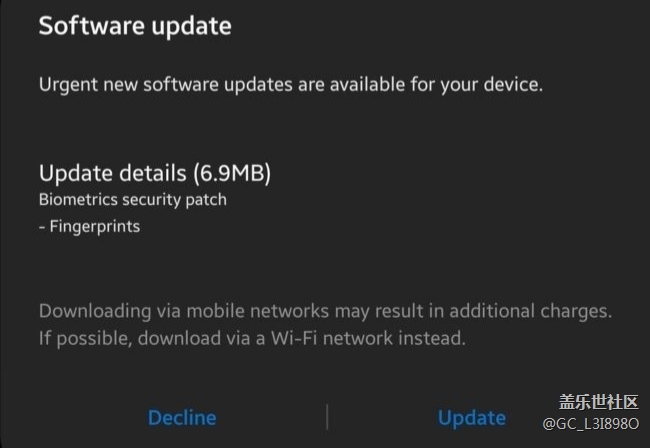 指紋的最新更新。 圖片
