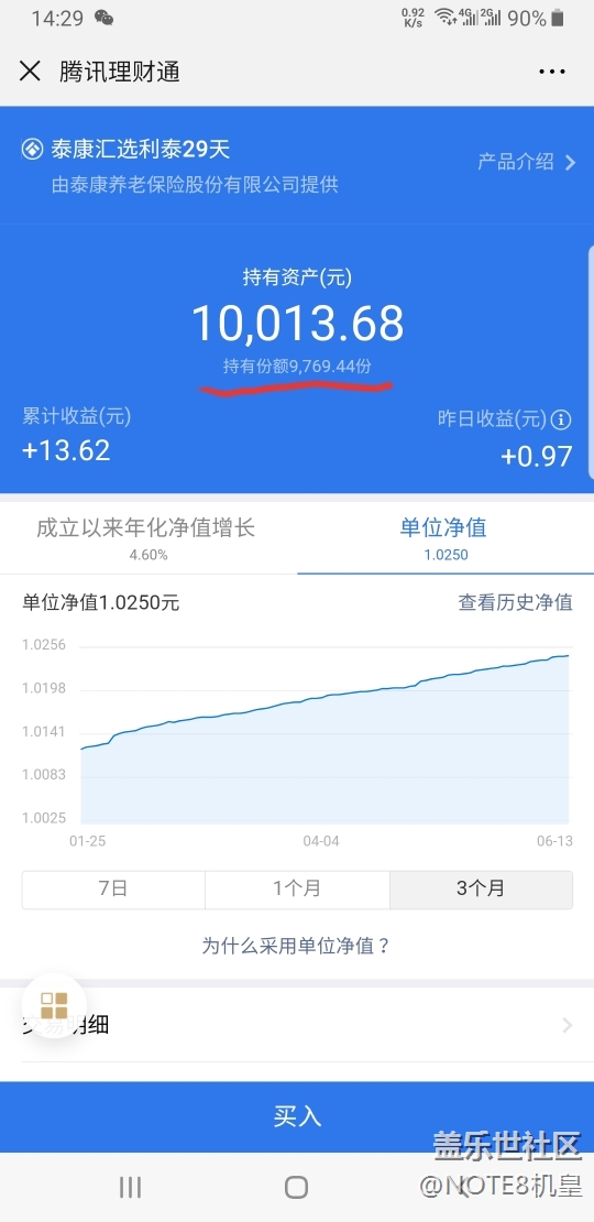問下各位大神,買的理財產(chǎn)品,一萬!但是畫紅杠的顯示個九千多份額!這到底什么意思?如果到期后取出來,到賬的是一萬加利息還是九千多?