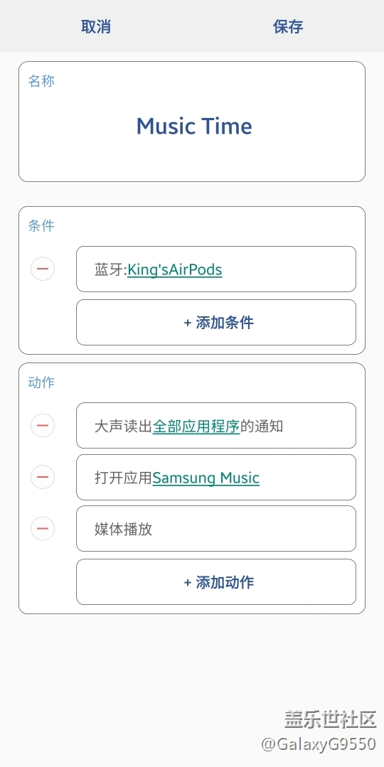 S10用戶打開(kāi)Bixby日常程序,創(chuàng)建新的快捷程序,設(shè)置當(dāng)你連接你常用的耳機(jī)時(shí)(藍(lán)牙則設(shè)置相對(duì)應(yīng)的藍(lán)牙名稱(chēng),有線連接則設(shè)置為耳機(jī)連接時(shí)),自動(dòng)開(kāi)啟常用的音樂(lè)應(yīng)用,設(shè)置媒體播放,這樣當(dāng)手機(jī)檢測(cè)到你連接了相對(duì)應(yīng)的設(shè)備時(shí),就會(huì)執(zhí)行你設(shè)置好的操作,這樣你只要戴上耳機(jī),打開(kāi)手機(jī)藍(lán)牙就好了,輕輕松松告別繁瑣設(shè)置,一步到位,即可享受音樂(lè)