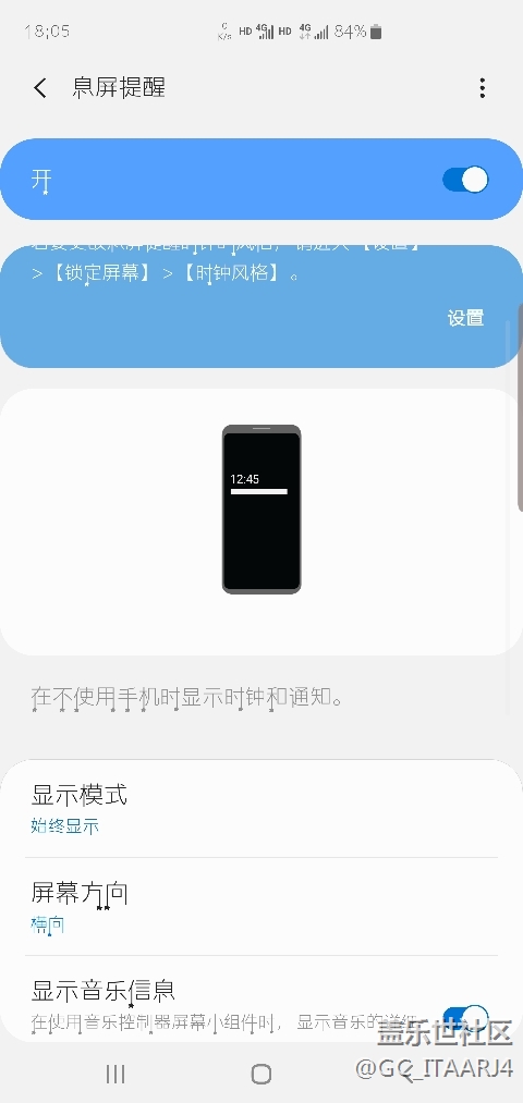帖子名稱: S10+息屏提醒總是用幾天就自動變?yōu)闄M向