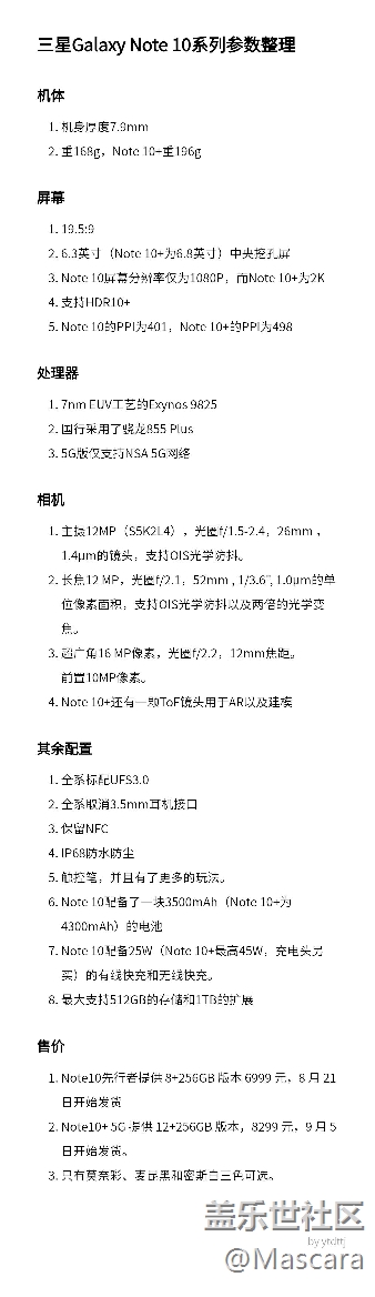 一張圖片看懂Galaxy NOTE10 圖片