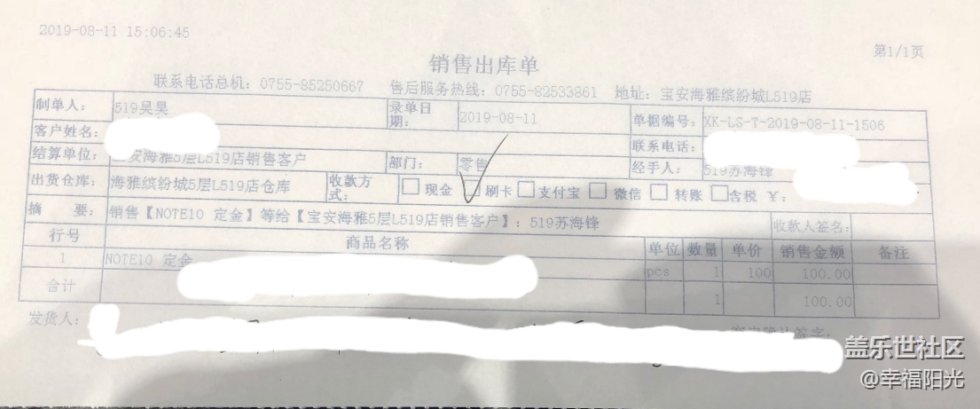 昨天在三星授權(quán)店海雅繽紛城F5預(yù)定了莫奈彩note10+5G,09.06發(fā)貨有送??:三星項圈耳機,迪沃10000ma雙向充電寶,夏洛克排插,本來只要交500訂金當場可以拿走的,我猶豫了下只交了100訂金,等到貨的時候一起拿