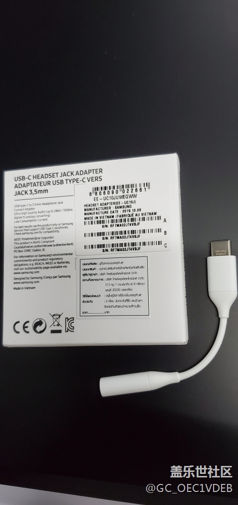 今天收到了在泰國(guó)三星官網(wǎng)買的耳機(jī)轉(zhuǎn)接頭,實(shí)測(cè)可用。299泰銖?