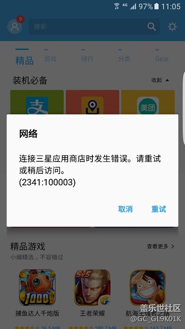 我今天更新軟件,為什么我今天進(jìn)入三星應(yīng)用商城提示錯了,有錯誤代碼,你們也和我一樣嗎?還是就我自己是這個樣子,著急,謝謝