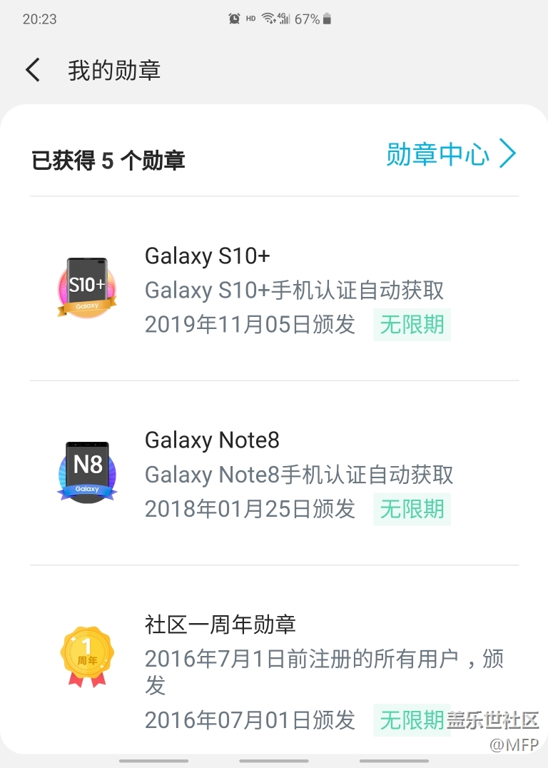 已完成手機認證了 為什么我的勛章里 沒有fold的勛章呢?