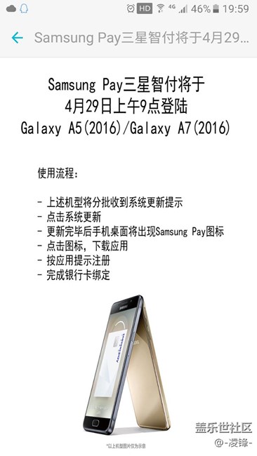 帖子標題: A7、A5(2016)明天上午9點推送Samsung Pay!