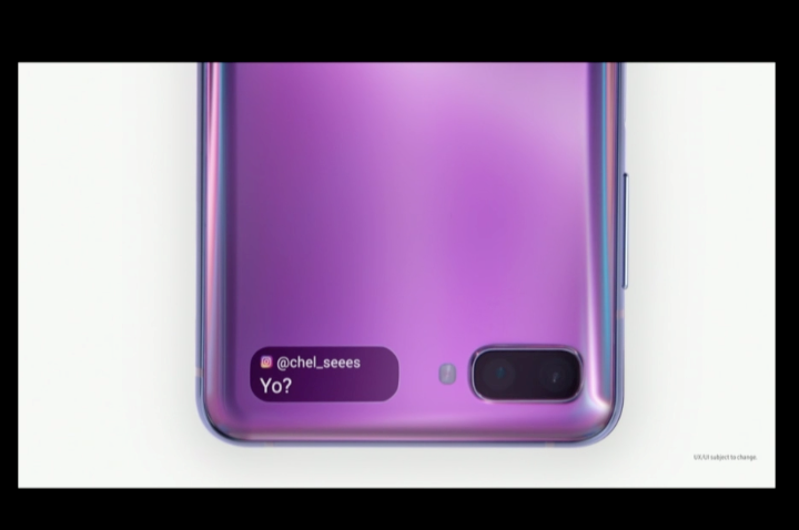 三星Galaxy Z Flip配備一塊1.1英寸小屏,可顯示信息、來點等,還可進行觸控操作。