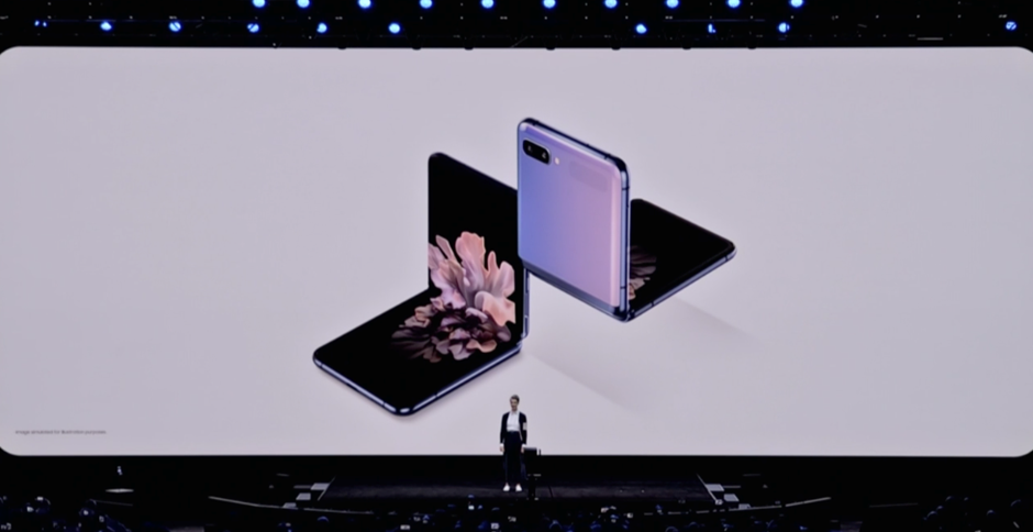 首先亮相的是三星Galaxy Z Flip!~一種全新的折疊形態(tài)亮相。