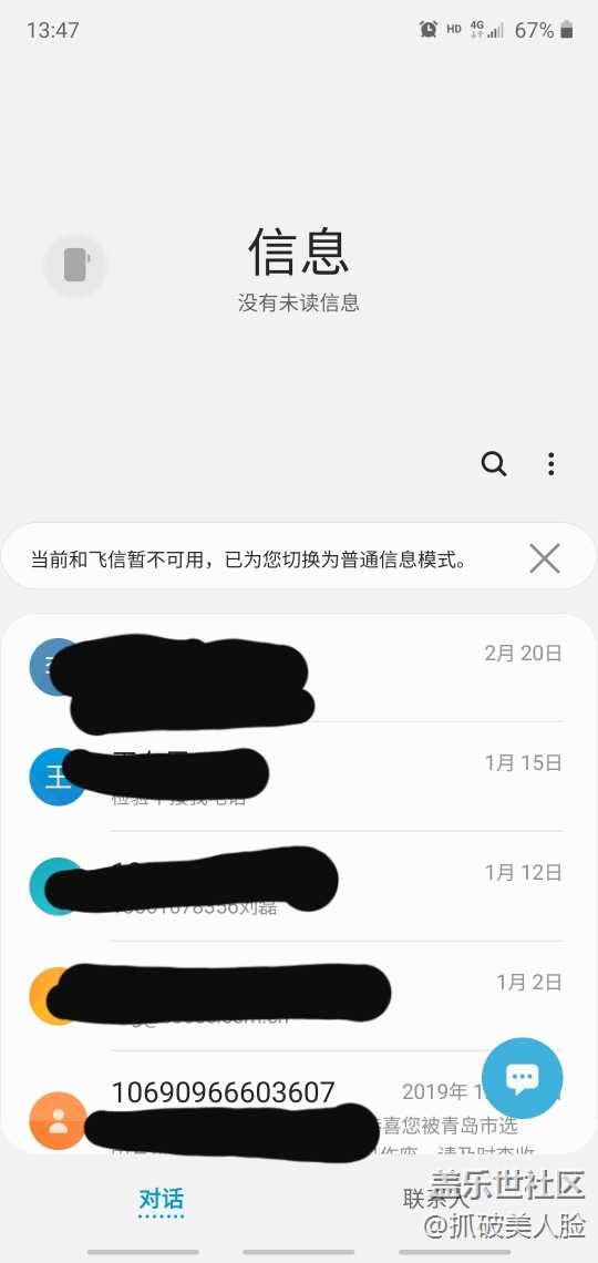 升級Android之后,每次打開短信都會顯示“當前和飛信暫不可用”,怎么取消掉不再讓它顯示,挺煩人的