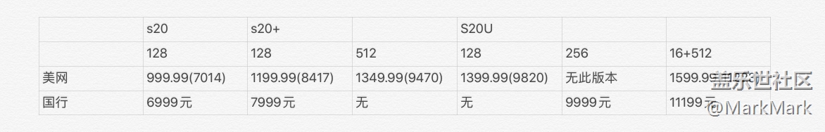 S20U 128 1399.99(9820元) 512 1599.99(11223元)