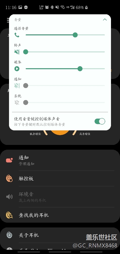 騷操作一下,我點(diǎn)擊手表通話圖標(biāo),顯示通話中,我點(diǎn)擊掛斷,在酷狗APP點(diǎn)擊播放,完蛋!手機(jī)聽筒在播放音樂。。。*沒聲。。手機(jī)外播喇叭也沒聲,按音量鍵也是調(diào)節(jié)聽筒聲音大小。。怎么操作都沒能切換回正常的耳機(jī)或手機(jī)喇叭播放。