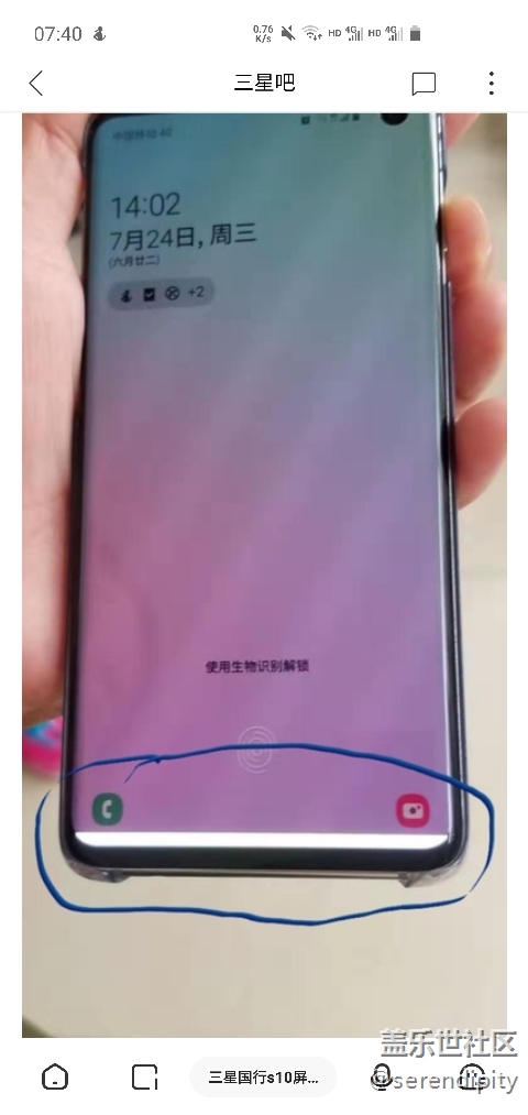 S10屏幕底部突然出現(xiàn)閃爍白條 圖片