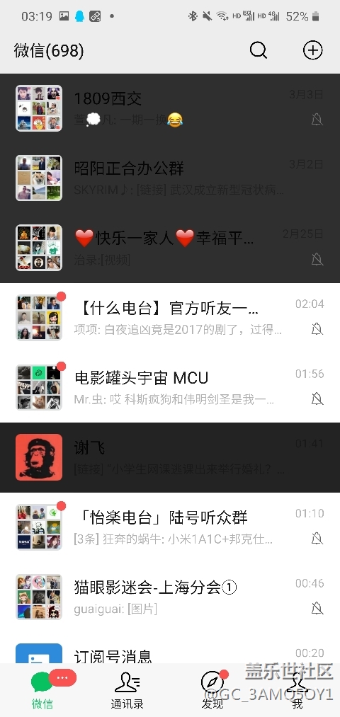 帖子標(biāo)題: Galaxy Note10+升級后,暗黑模式微信出現(xiàn)黑條