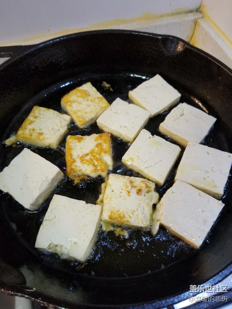 平底鍋煎豆腐之至兩面焦黃