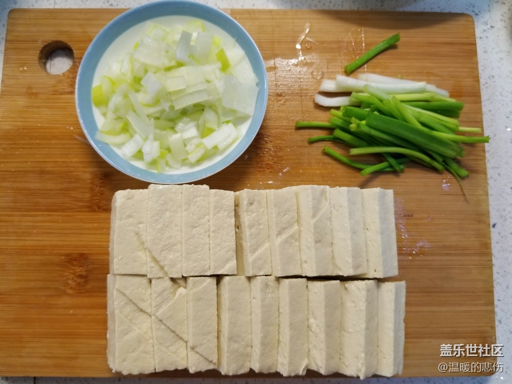 豆腐切塊,大蔥切碎